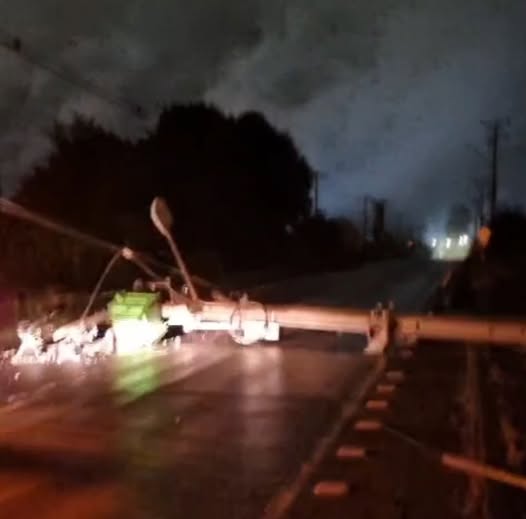 El hecho se registró durante la madrugada de este lunes y, de acuerdo a los antecedentes preliminares, habría sido provocado por el paso de un camión que, por causas que se investigan, enganchó cables del tendido eléctrico, generando el desprendimiento del poste y el consiguiente corte de la vía.