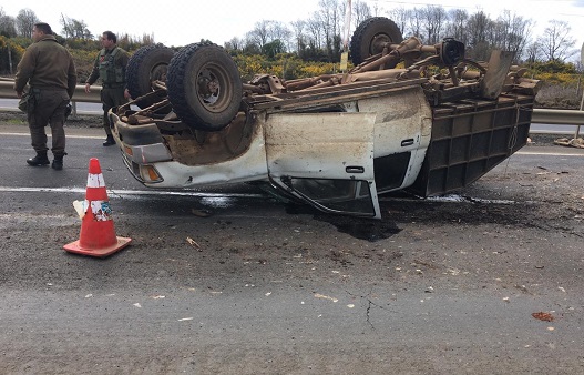 La víctima, identificado con las iniciales J.P.Q.M. conducía su camioneta cargada con leña trozada cuando por causas que se investigan volcó en el kilómetro 599 a 500 metros del cuartel de la unidad especializada de la Zona Araucanía Control Orden Público.