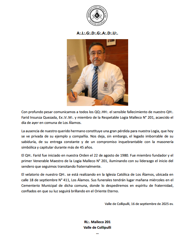 LocalNoticias DestacadasPrincipalesRegional GRAN LOGIA MASONICA COMUNICA: Por Staff Radio - 16 de septiembre de 2025 0 291 FacebookTwitterPinterestWhatsApp