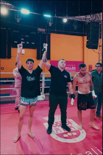 COLLIPULLI.- El deportista collipullense César Muñoz Osorio, director de Team Samurai, representó con orgullo a la comuna de Collipulli, en el evento Ñuble Session Fight, disputado recientemente. Muñoz participó en la pelea profesional de fondo de kickboxing, logrando una destacada actuación que lo consagró campeón en la categoría de 65 kilogramos.