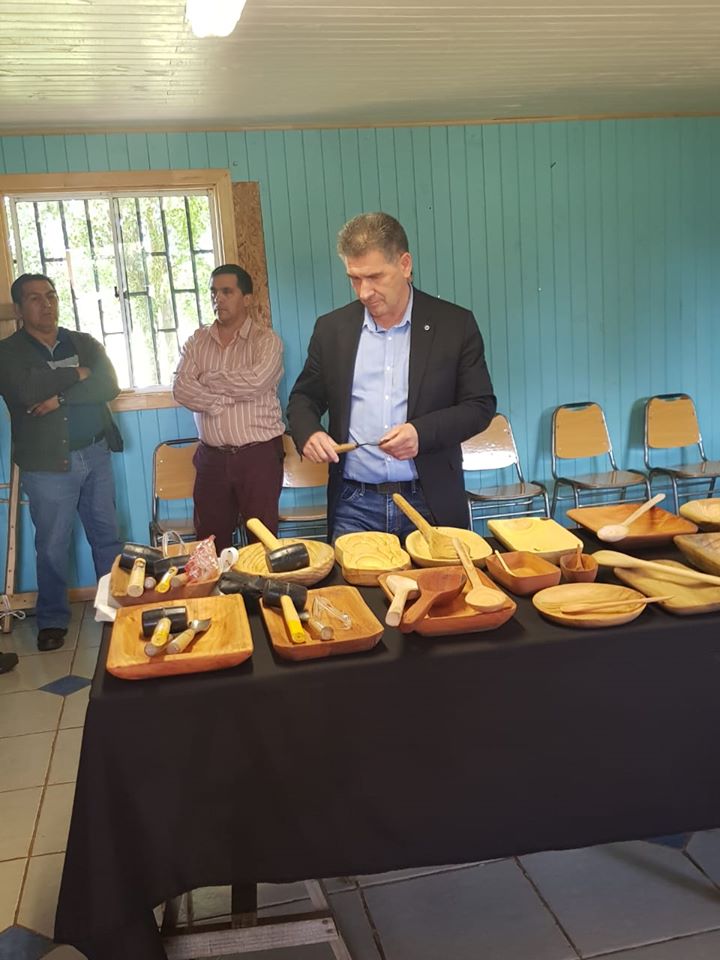 El artesano y profesor Luis Ocares, con una destaca trayectoria regional, estuvo a cargo de canalizar sus conocimientos a los alumnos (as) para dar forma a trozos de madera noble en castaño, lingue, álamo, avellano y roble; fueron 6 jornadas de aprendizaje y trabajo arduo para dar forma a platos, bandejas, cucharas, pocillos, lámparas, entre otros productos artesanales.