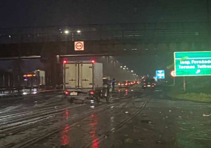 Las autoridades reiteraron el llamado a conducir con extrema precaución en condiciones de inestabilidad climática, especialmente cuando fenómenos como el granizo vuelven peligrosas las principales carreteras del sur del país. (Foto cedida por auditor)