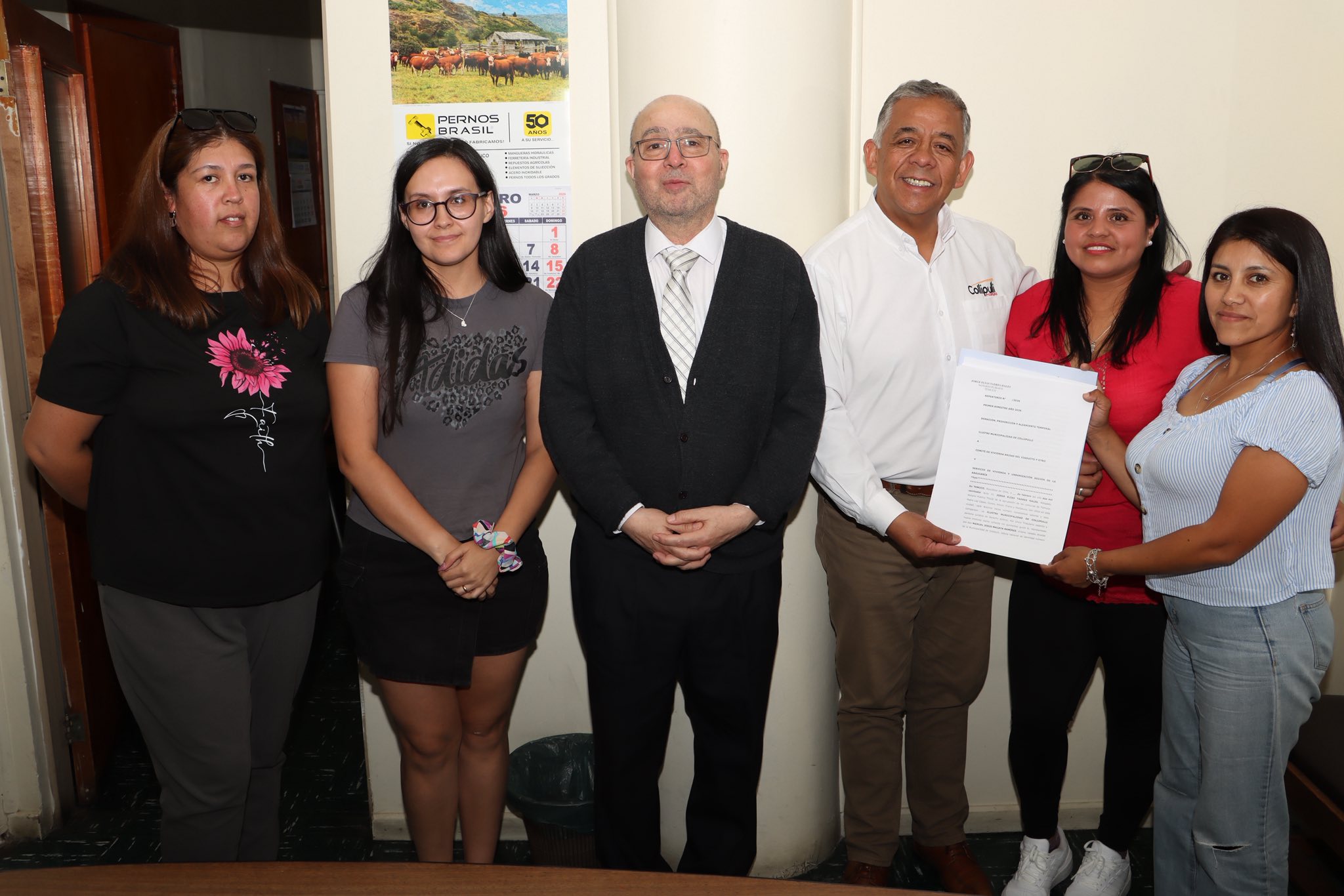 COLLIPULLI.– Un significativo avance en materia habitacional se concretó en las últimas horas para la comuna, luego que el alcalde Manuel Macaya Ramírez, junto a dirigentas de los comités de vivienda Brisas del Viaducto y Portal Malleco, se trasladaran hasta la ciudad de Temuco para formalizar la firma del traspaso de un terreno municipal destinado a la construcción de viviendas.