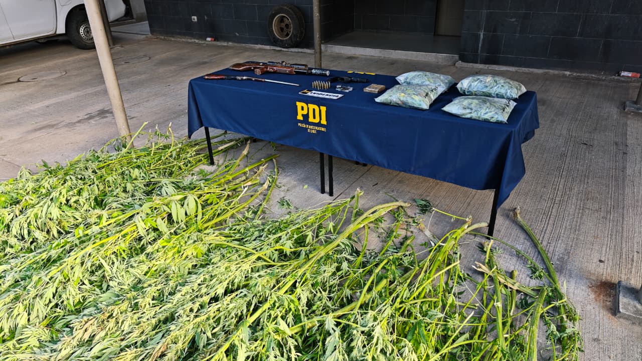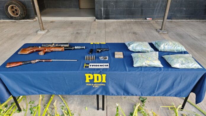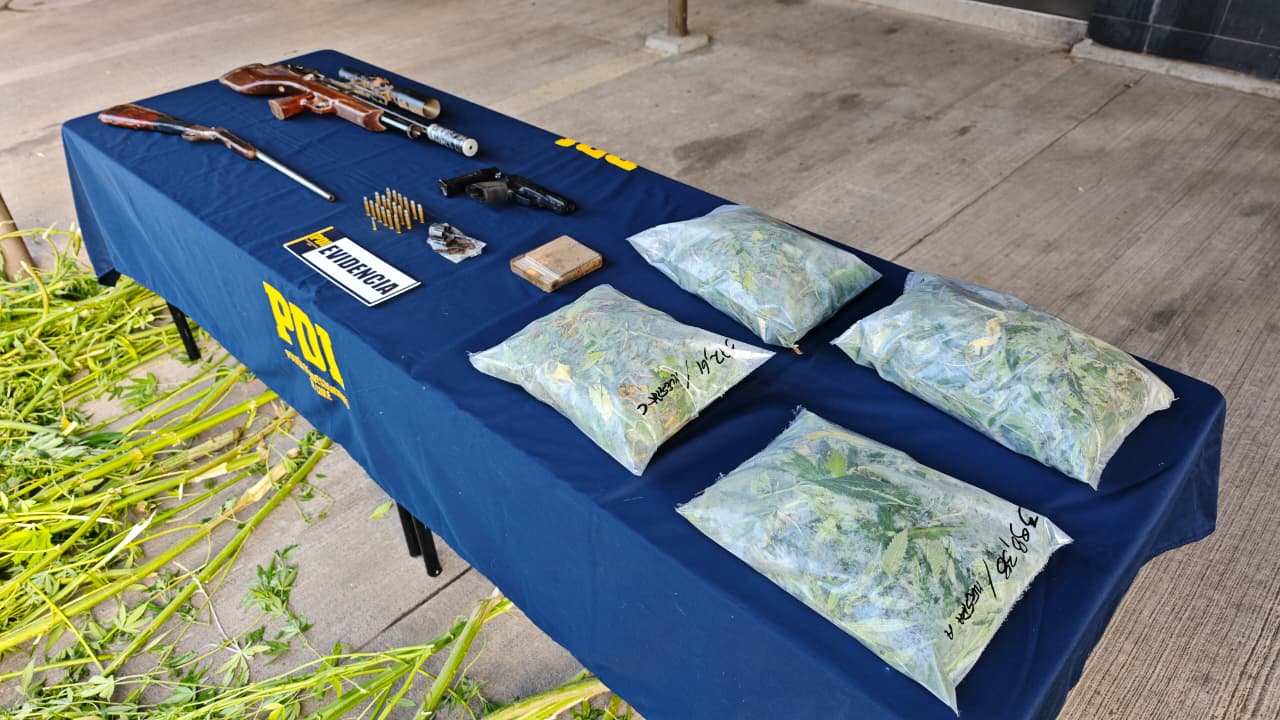 PDI desarticula cultivo de cannabis en Collipulli: incauta mas de 2 kilos de droga, 116 plantas y armamento
